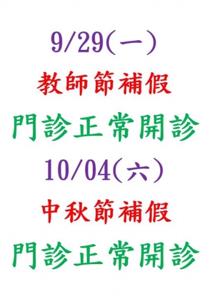 中秋節補假 正常門診
